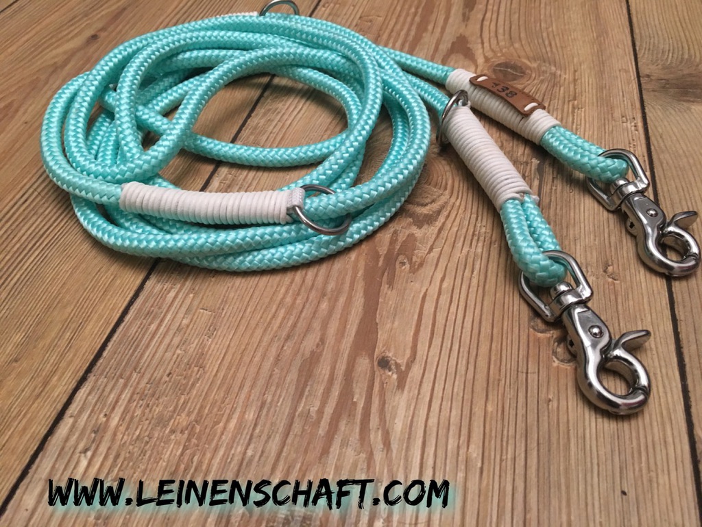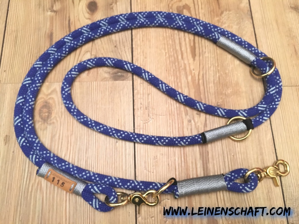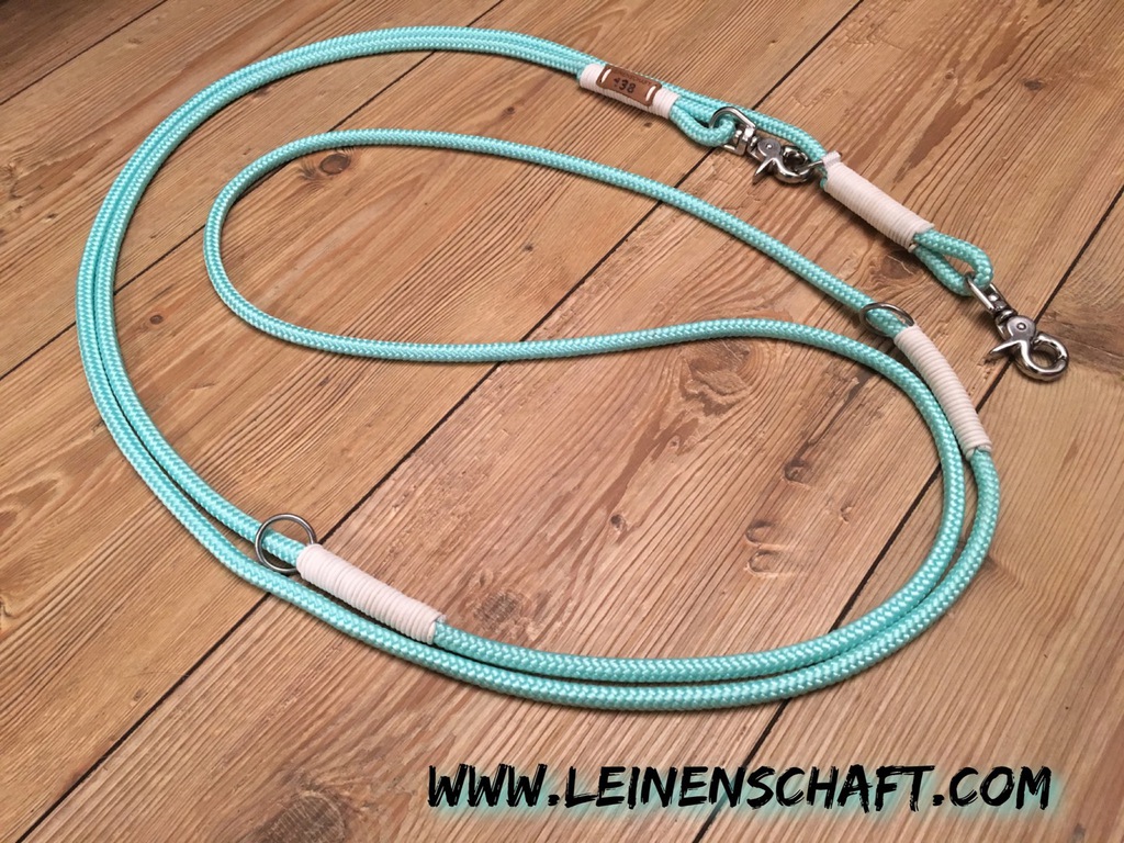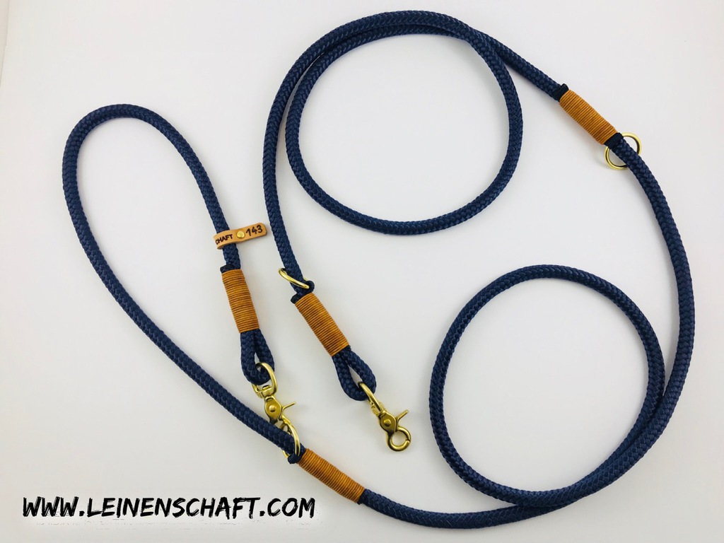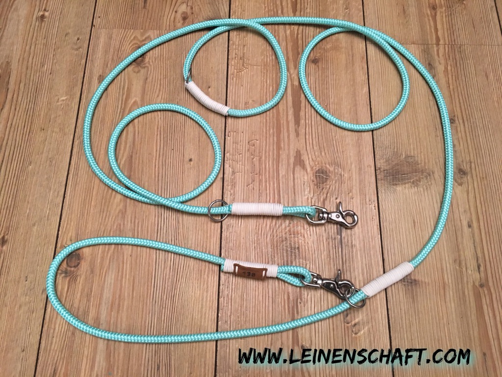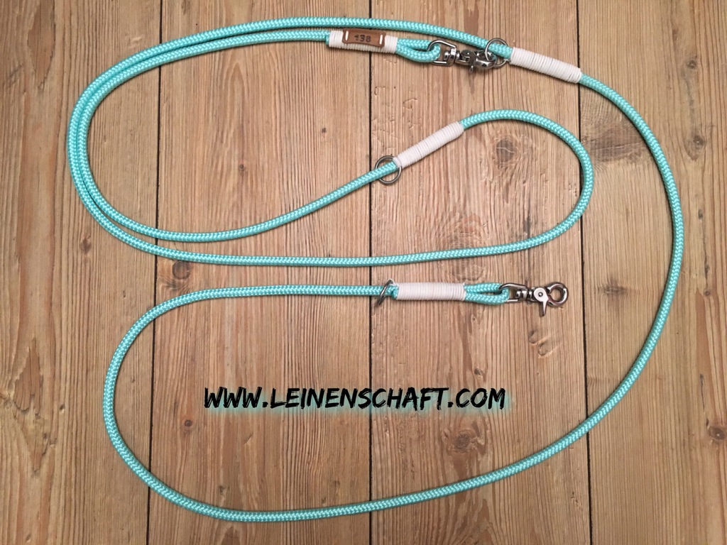Die dreifach verstellbare Führleine kann in drei verschiedenen Längen benutzt werden. Standardmäßig kann sie auf 3,00 m, 2,40 m, und 1,70m eingeklinkt werden.