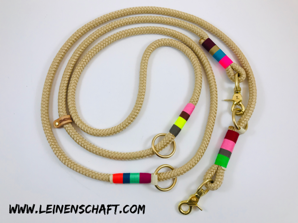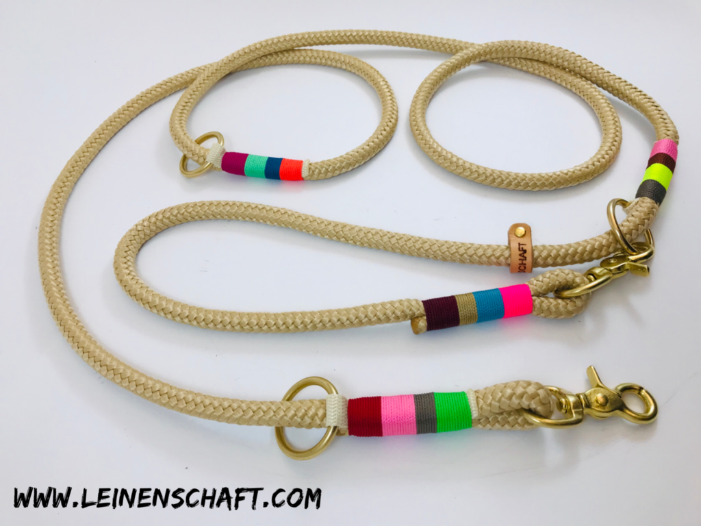 Erhältlich aus 8 und 12mm PP- Seil, so wie aus allen verfügbaren Kletterseilarten. Du kannst aus allen angebotenen Taklingmaterialien -arten, und - farben wählen, zwischen Messing und Edelstahl, und ob Du Bolzen- oder Scherenkarabiner haben möchtest.