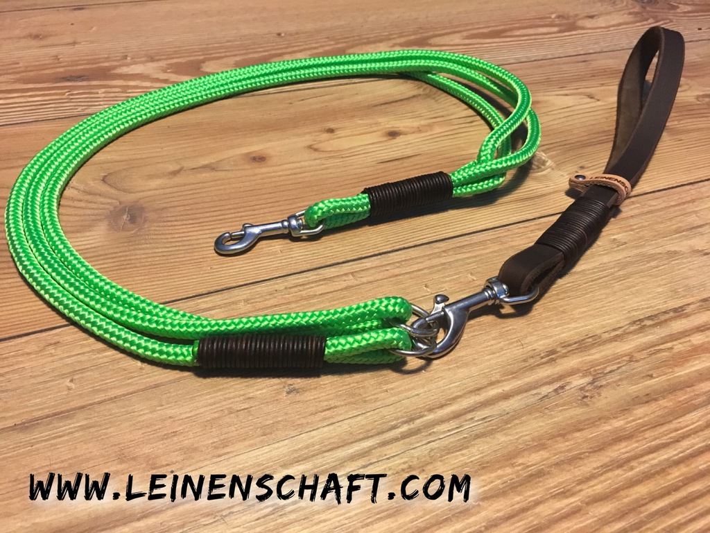 Die LEINENSCHAFT- Teleskopleine vereint eine Führleine und eine lange Leine für kontrollierten Freilauf. Zusätzlich kann die Handschlaufe noch als Kurzführer eingesetzt werden.
